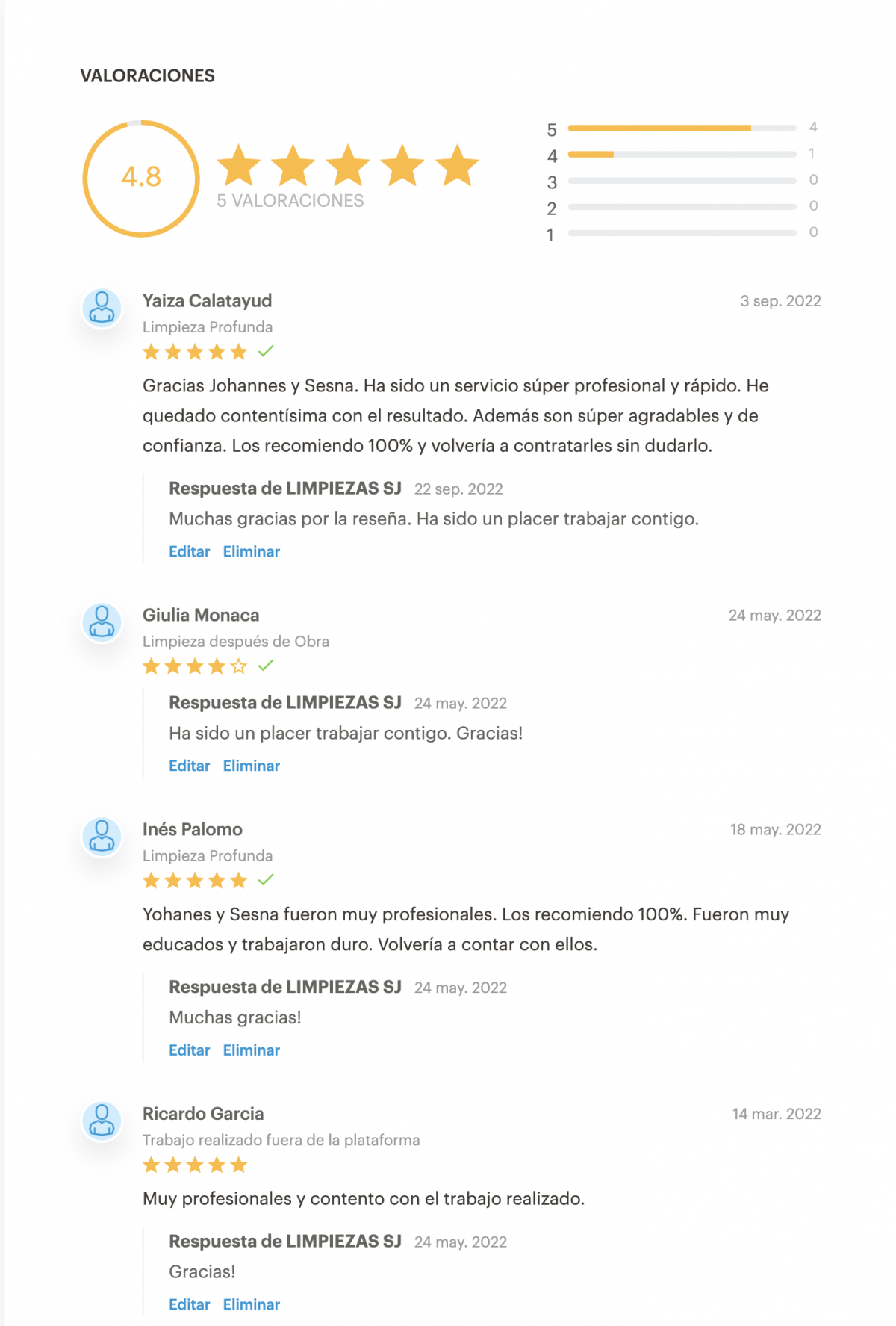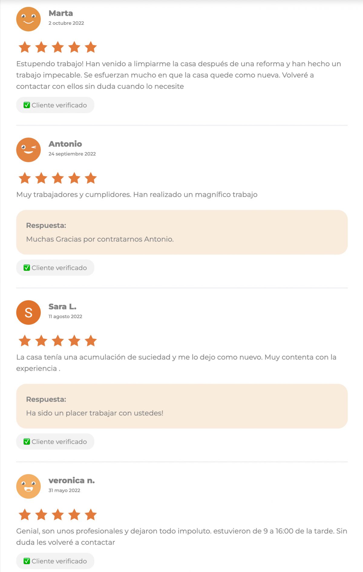 "Mi madre no está contenta con la limpieza de la otra empresa, por lo que he tenido que llamarles de nuevo."